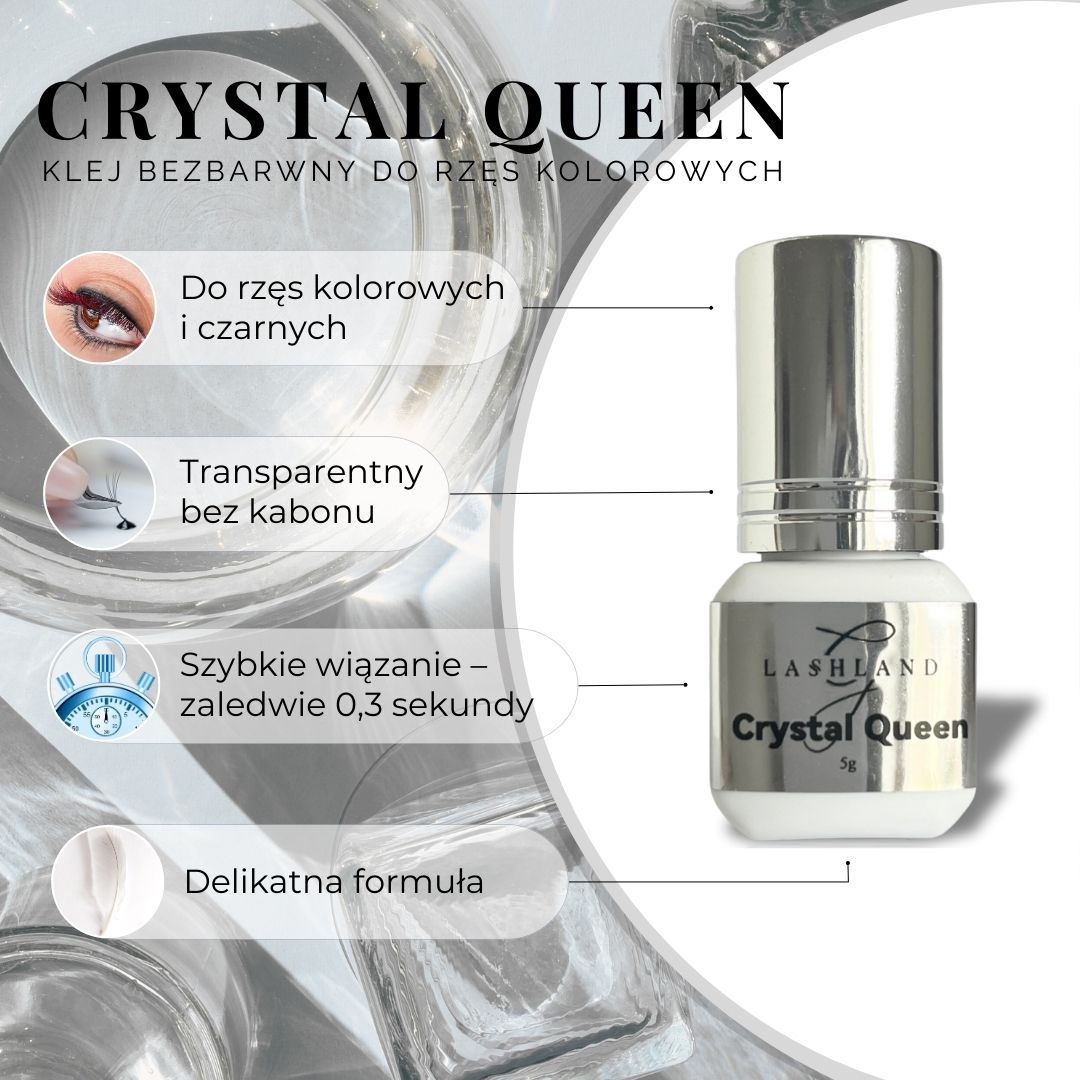 Bezbarwny klej do rzęs kolorowych i czarnych Crystal Queen – 5ml