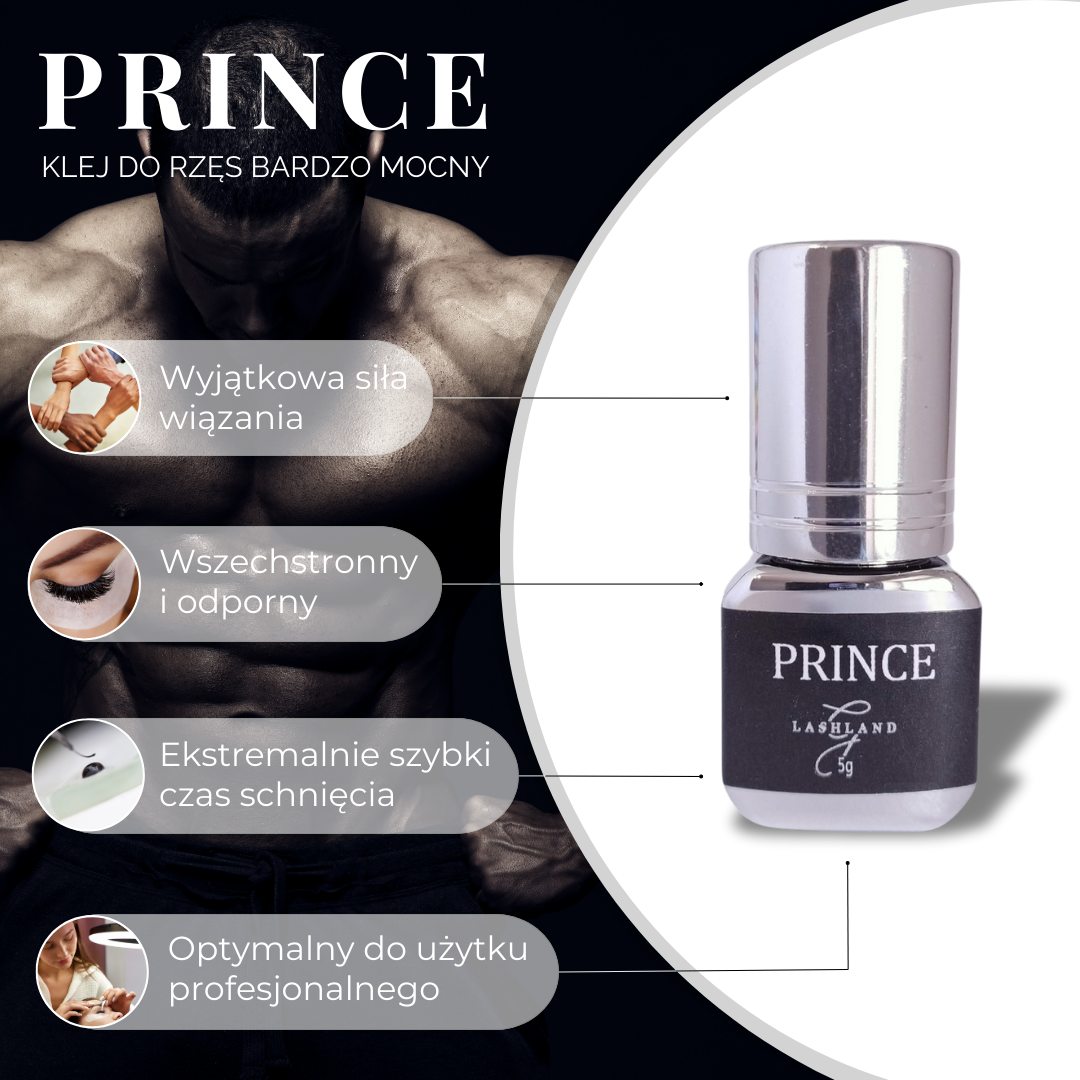 Nowy ulepszony Bardzo mocny klej do rzęs Prince to produkt zapewniający rewolucyjnie silne wiązanie przy przedłużaniu rzęs! Starannie przemyślana formuła sprawia, że preparat zapewnia największą trwałość stylizacji, ale również ułatwiają pracę stylistek. Jeśli szukasz kleju, który niezależnie od warunków otoczenia będzie utrzymywał rzęsy w stałej pozycji, Prince będzie idealnym wyborem.